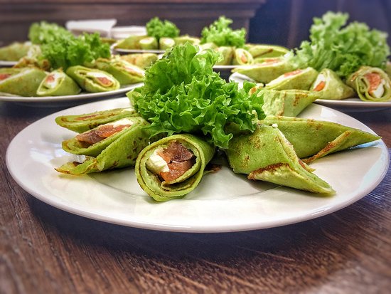 Шпинатні млинці з лососевою начинкою