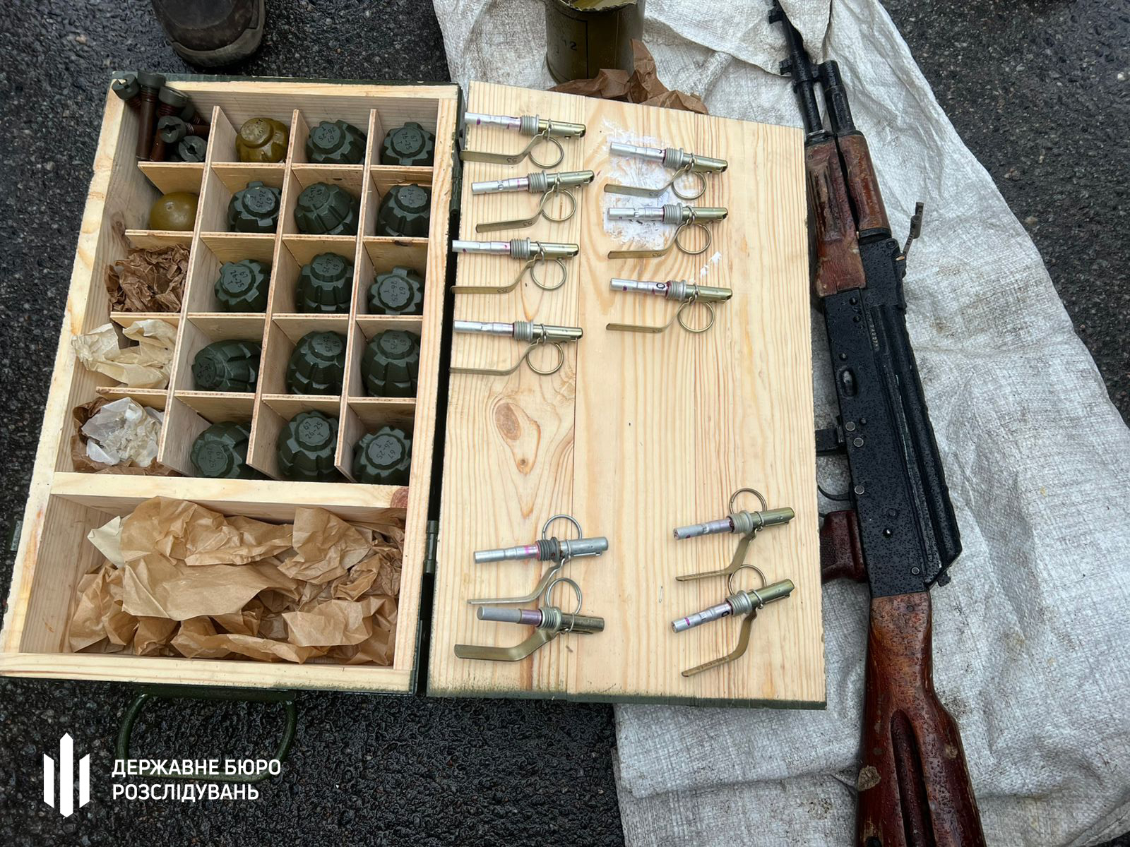 "Слідчі задокументували спробу продати автомат АК-74 та 17 гранат Ф-1 із запалами за 150 тисяч гривень. Під час передачі зброї його затримали. Крім того, під час обшуків у його квартирі вилучили 174 патрони калібру 5,45 мм та споряджений магазин із 41 патроном", — зазначили у відомстві.