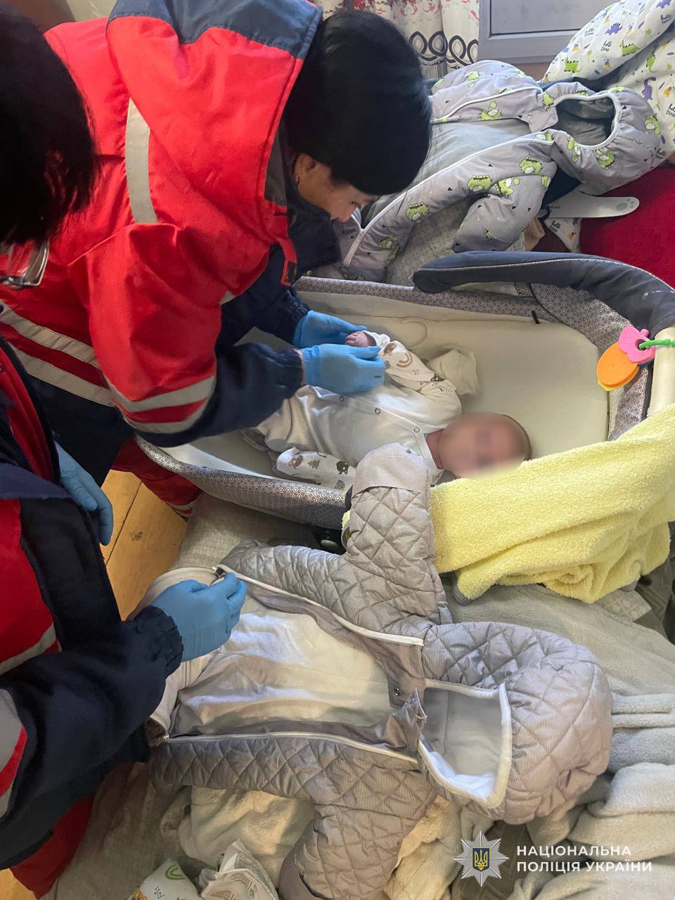 На місце події негайно виїхали працівники поліції, "швидкої", ДСНС та служби у справах дітей. У квартирі виявили двох дітей — восьмирічну дівчинку та півторамісячного хлопчика. Діти були виснаженими та наляканими. До того у помешканні були відсутні харчові продукти.