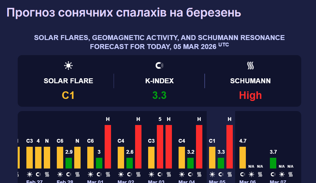 У суботу, 7 березня, сонячна активність спаде до 3,7 бала. Такий показник відповідає магнітній бурі зеленого рівня. Вона вважається слабкою та не позначається на здоров'ї.