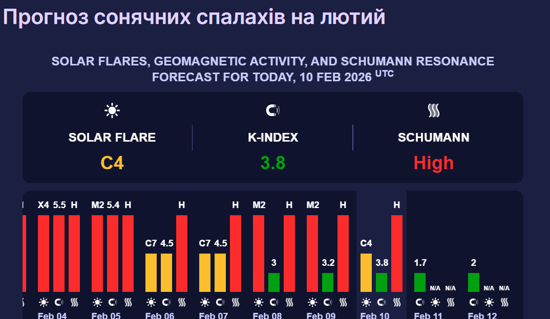 У середу, 11 лютого, суттєвих магнітних бур на Землі не очікується. Геомагнітне поле буде спокійного рівня, а сонячна активність — помірною.