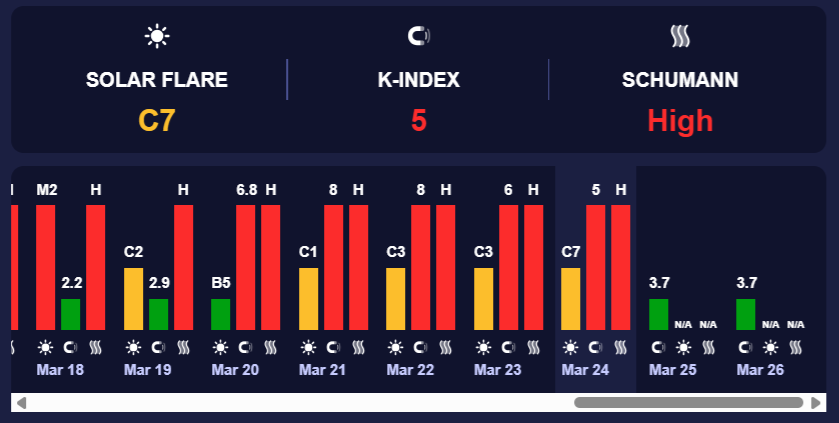 У середу, 25 березня, на Землі очікується сонячна активність з К-індексом 3,7 (зелений рівень). Такий показник свідчить про незначну магнітну активність.