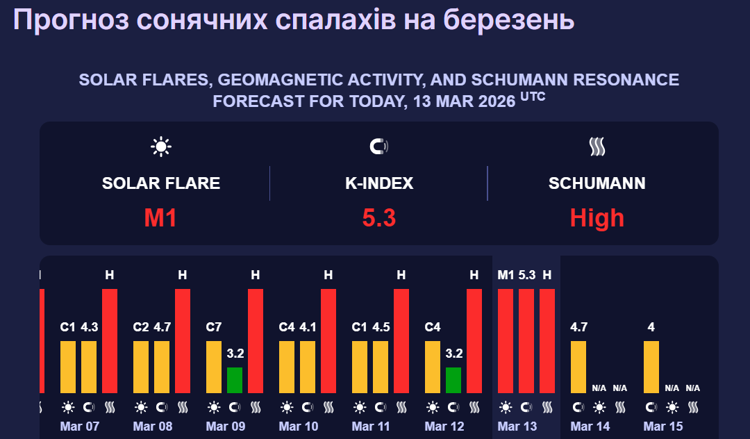 А вже у неділю, 15 березня, сонячна активність спаде до чотирьох балів. Такий показник також відповідає магнітній бурі жовтого рівня.