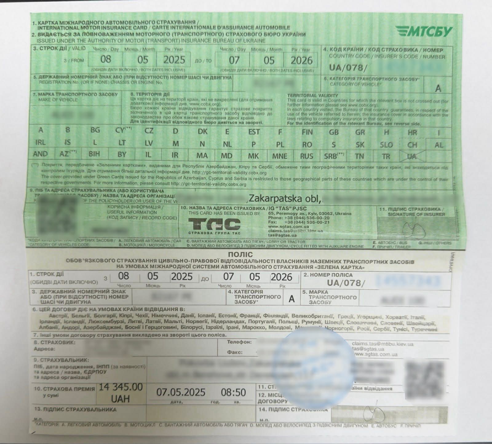 "Упродовж минулої доби прикордонники Мукачівського загону задокументували шість випадків використання підроблених сертифікатів міжнародного страхування транспортних засобів", — констатували в Держприкордонслужбі.