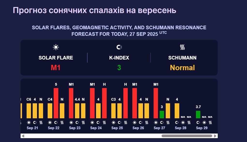 Водночас вже 28 вересня потужність космічного шторму зросте до чотирьох балів (жовтий рівень). Метеозалежні люди у цей день можуть відчути погіршення самопочуття.