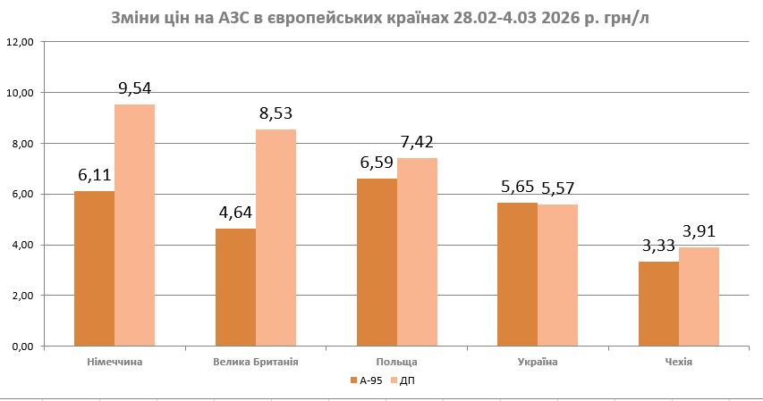 За його словами, у низці європейських держав дизель подорожчав значно більше, ніж в Україні. Зокрема, у Німеччині ціна зросла приблизно на 9,54 грн за літр, у Великій Британії — на 8,53 грн, а в Польщі — на 7,42 грн. У США, своєю чергою, ціни на паливо підвищилися на 8%. Для порівняння, в Україні за цей же період дизельне пальне подорожчало на близько 5,57 грн за літр.
