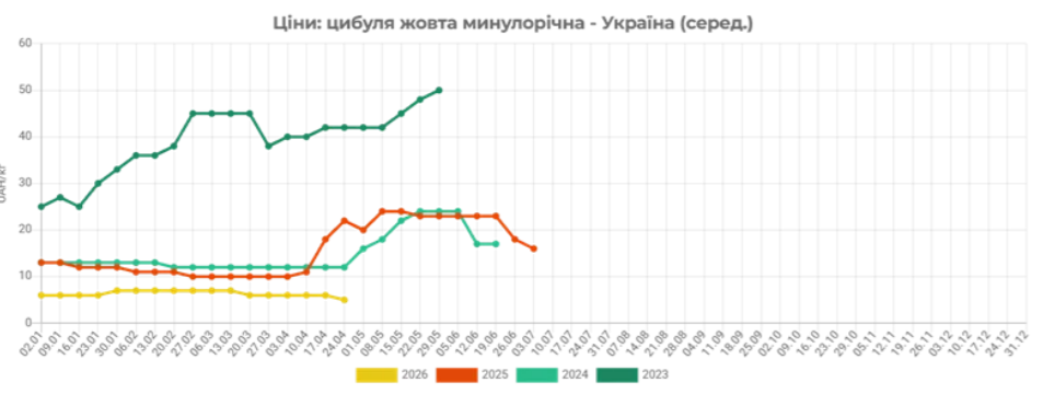 Водночас, попри поточне підвищення цін, ріпчаста цибуля в Україні наразі в середньому все ще на 68% дешевша, ніж за аналогічний період минулого року.