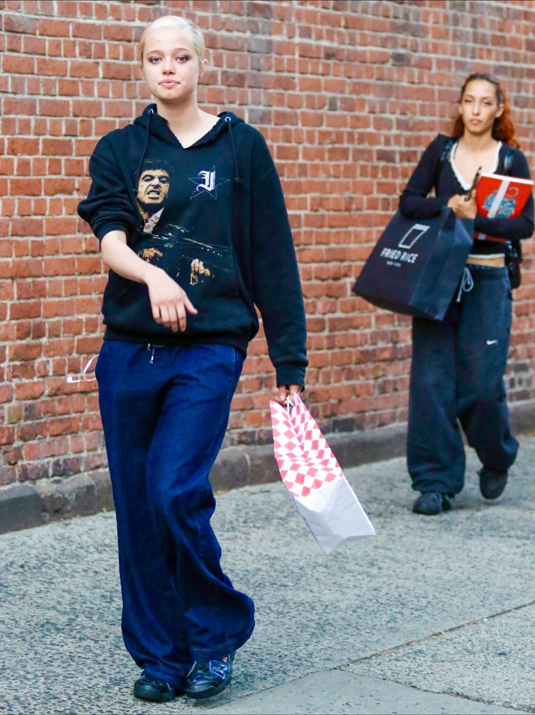 Оприлюднені в Instagram знімки привернули увагу кардинальними змінами у зовнішності доньки зіркових батьків. Попри те, що раніше у Шайло завжди було світле волосся, тепер вона зважилася на радикальний крок — пофарбувала його в платиновий блонд і зачесала назад.