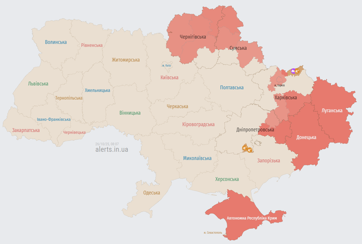 У неділю зранку, 26 жовтня, російська армія продовжує атакувати Україну ударними безпілотниками. Ворожі дрони фіксують на Півночі та Сході нашої держави.