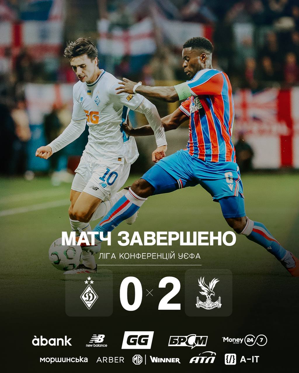 Київське "Динамо" програло в першому турі групового раунду Ліги конференцій. На старті турніру київські футболісти не знайшли контраргументів у поєдинку проти англійського "Кристал Пелас" (0:2).