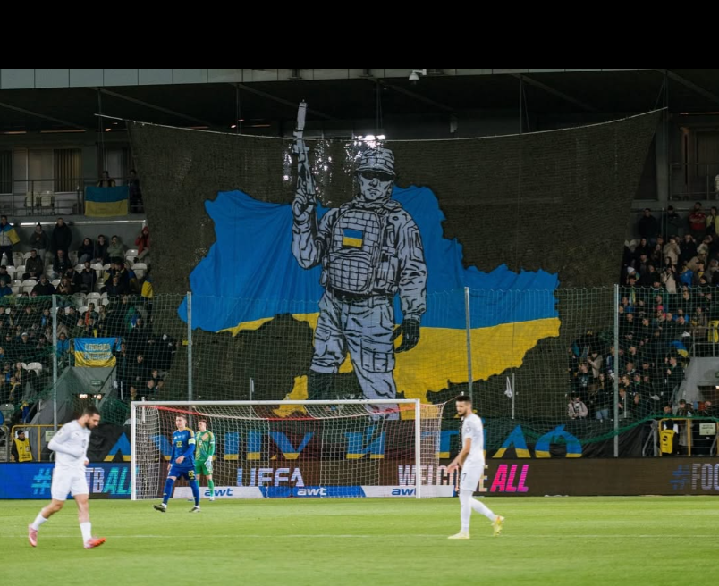 Він також опублікував фотографію перформансу вболівальників національної футбольної команди перед одним із матчів. На цьому фото фанати "синьо-жовтих", які зобразили на трибунах велетенського українського воїна.