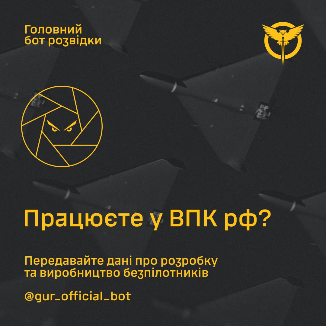 "Щоби припинити брати участь в агресії, виходьте на прямий, безпечний і анонімний зв'язок з ГУР через Головний бот розвідки", — йдеться в повідомленні.