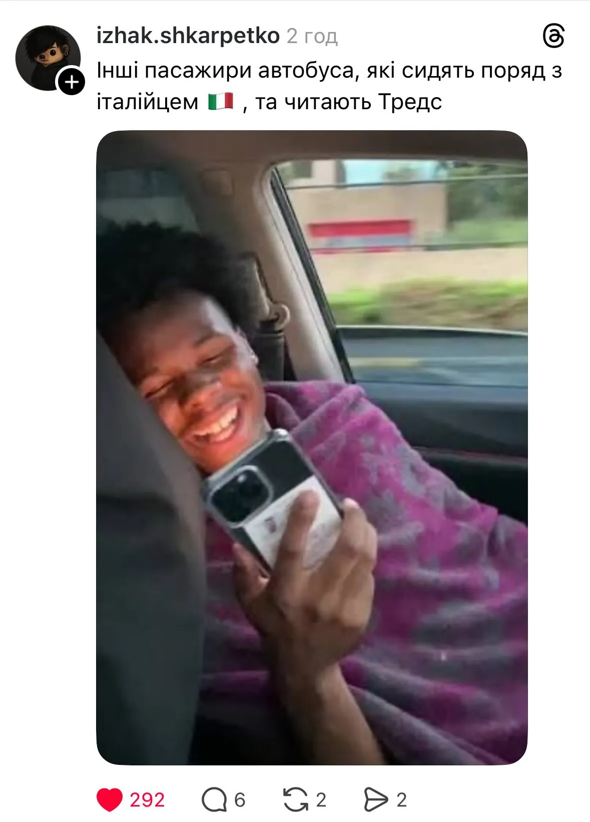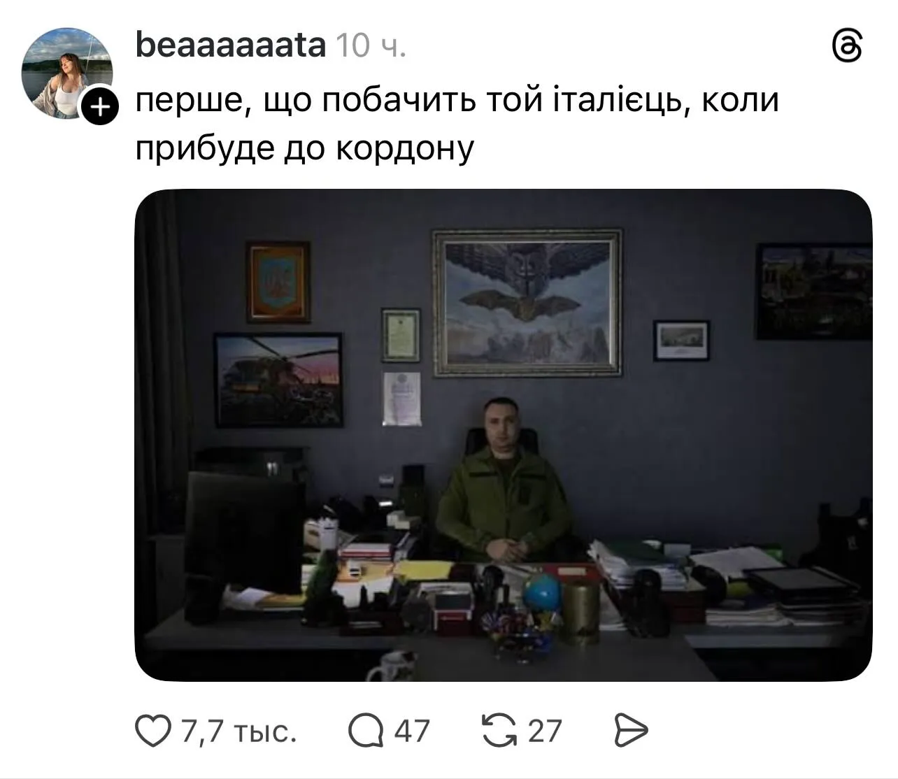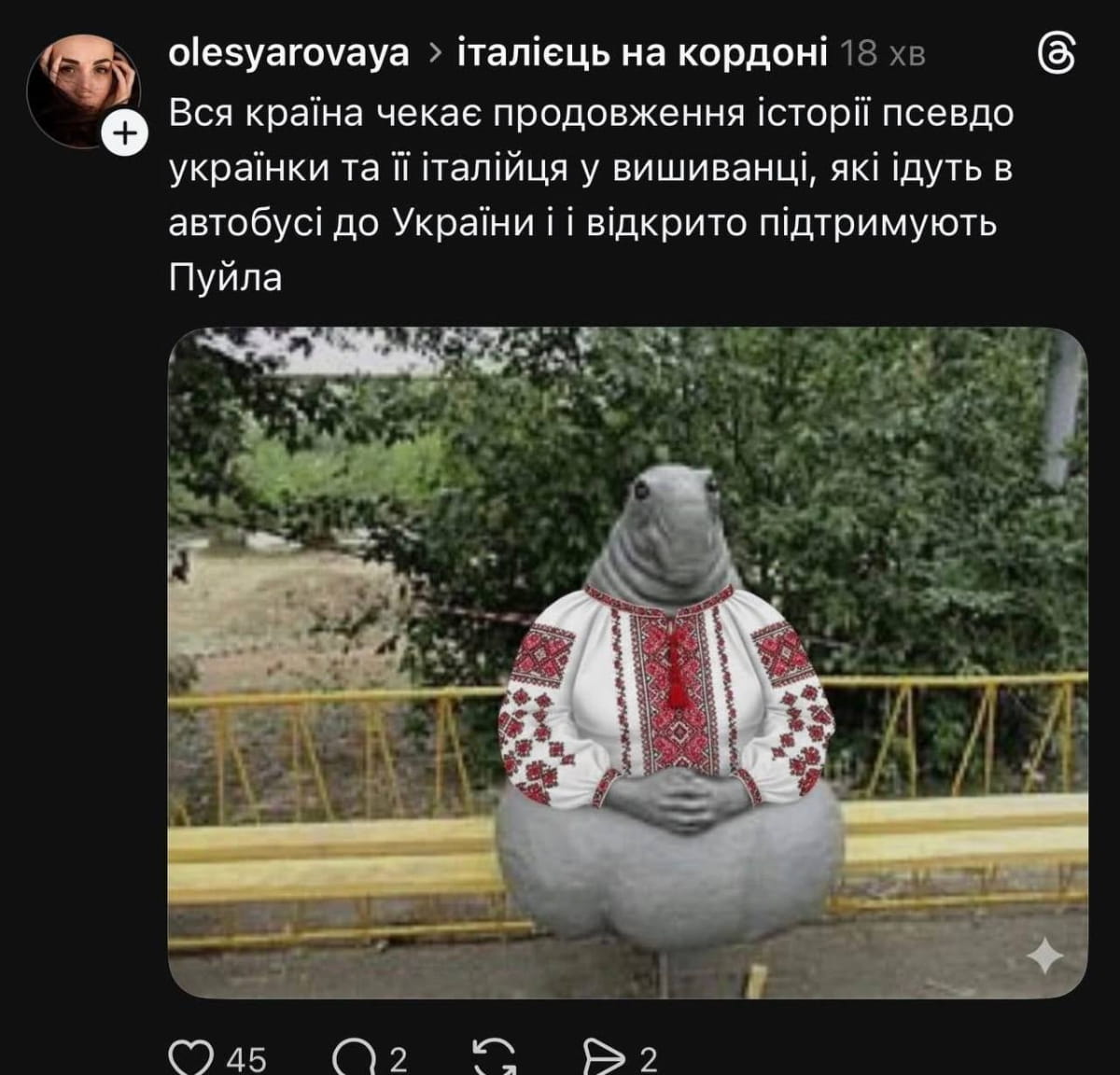 Ця історія набула розголосу після публікації цікавого допису українки Дар’ї Мельніченко в Threads, яка поверталася додому з Італії. У своєму пості вона розповіла про чоловіка, який не лише зневажає нашу країну, а й підтримує президента Росії Володимира Путіна.