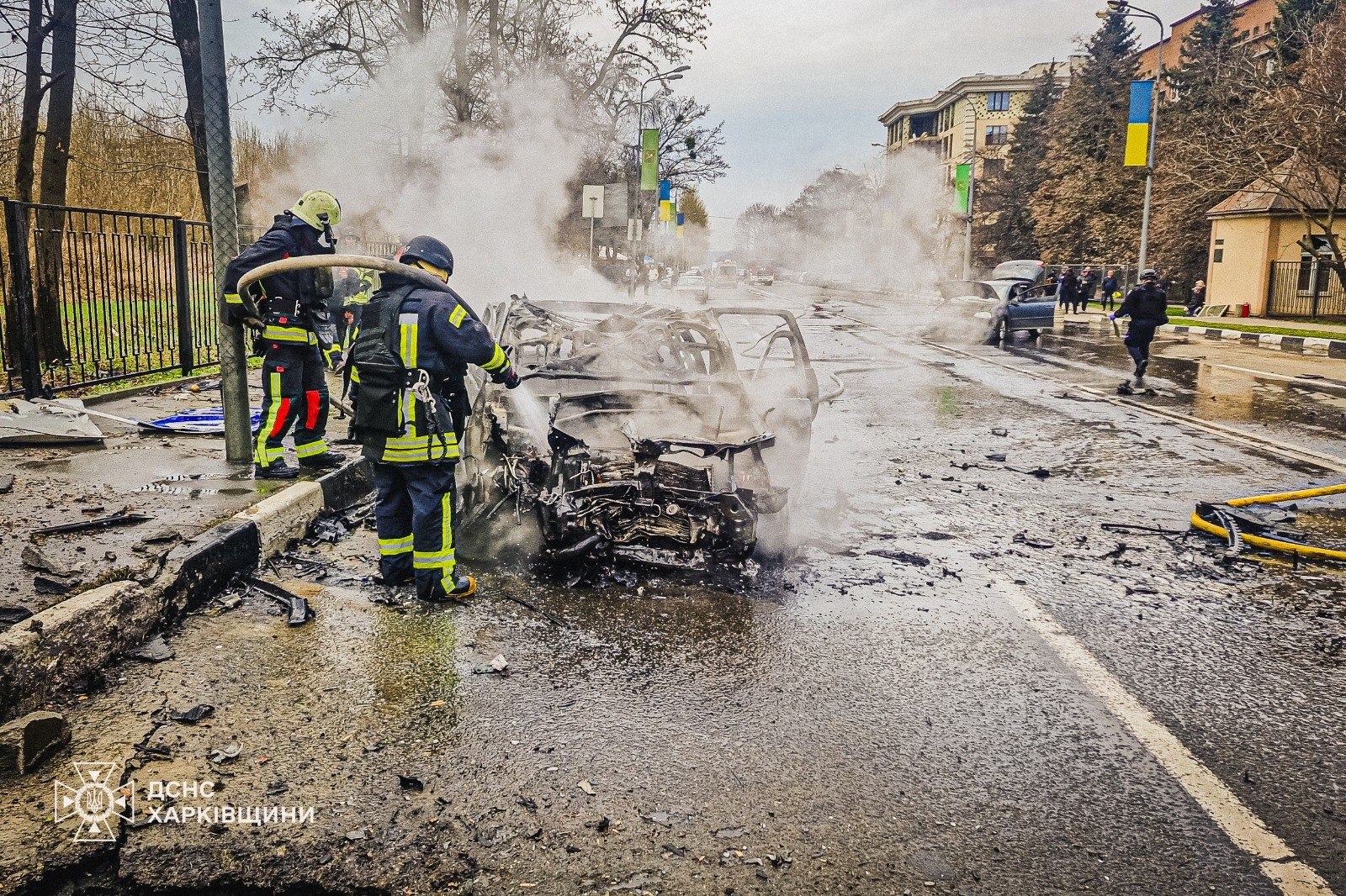 Відомо, що росіяни атакували Харків безпілотниками. У Шевченківському районі міста спалахнула пожежа. Загорілися два легкові авто, ще два — пошкоджені.