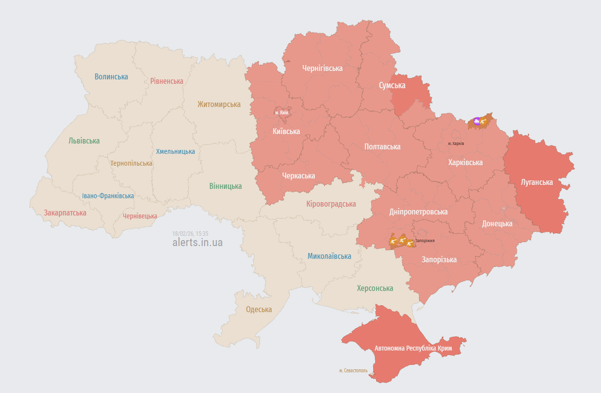 У середу, 18 лютого, у Києві та низці областей оголосили повітряну тривогу. Росіяни атакують ракетами.