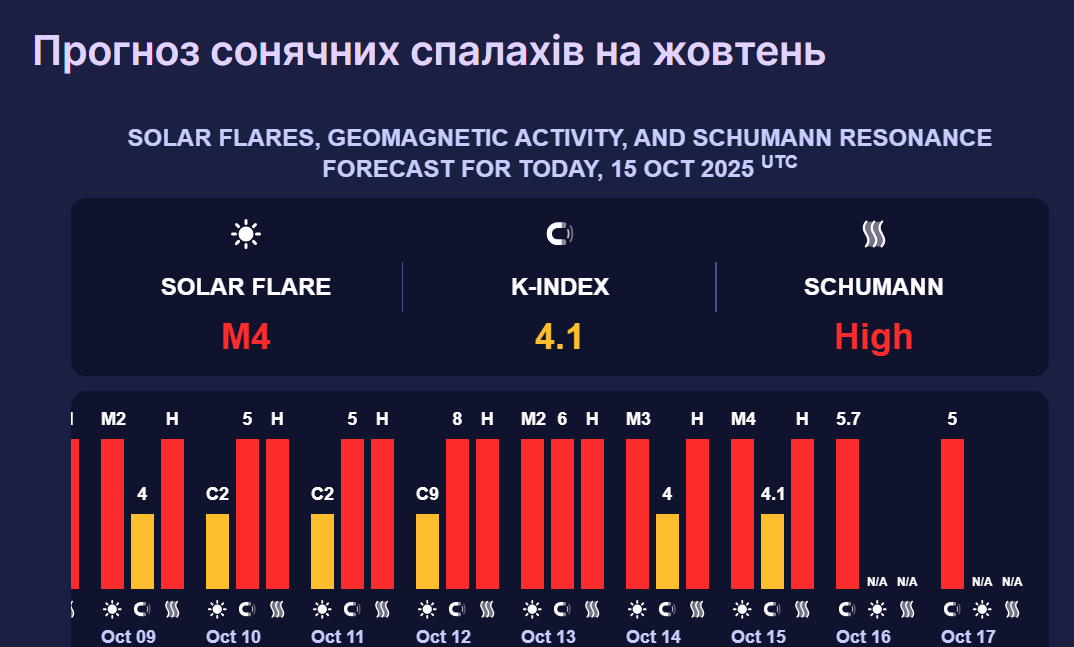 Нагадаємо, згідно з даними Центру прогнозування космічної погоди NOAA, у жовтні магнітні бурі будуть різної інтенсивності.