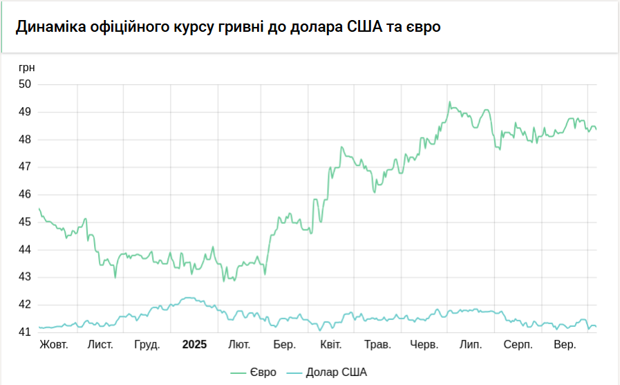 Офіційний курс євровалюти становить 48,2696 гривні за один євро (-0,1122 гривні).