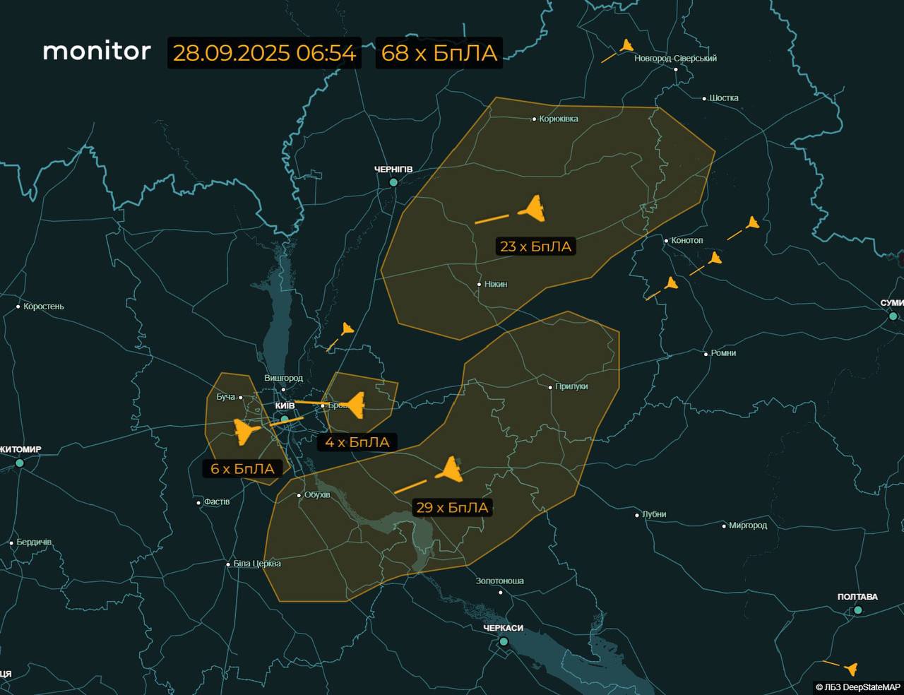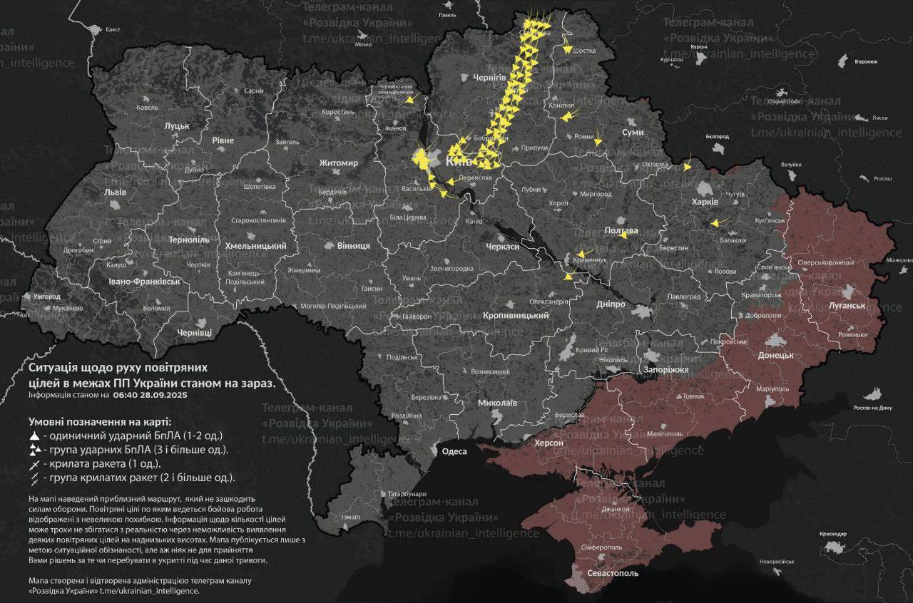 У ніч на неділю, 28 вересня, російські окупанти провели масовану комбіновану атаку на Київ, застосувавши крилаті ракети та безпілотники. У столиці лунали вибухи, в деяких районах спалахнули пожежі.