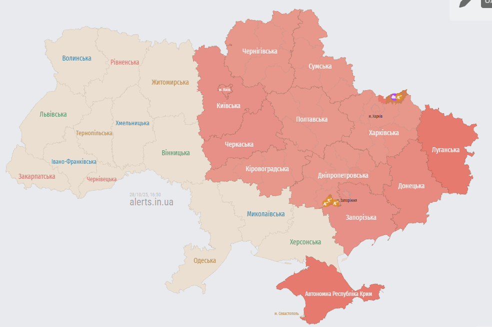 У вівторок, 28 жовтня, Київ та низку областей охоплювала повітряна тривога. Існувала ракетна небезпека.