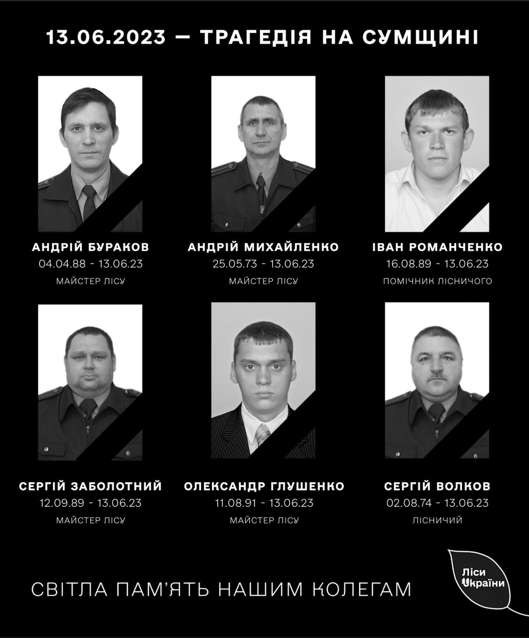"Поїхали вшістьох, щоб швидше виконати завдання. Від військових було отримано дозвіл на проїзд та роботу. Спочатку ДРГ почала обстрілювати село, лісівники це почули та вирішили виїхати з того місця, де перебували. На лісовій дорозі, як виявилось, була засідка ДРГ, яка їх і розстріляла. Наприклад, у лісничого Сергія Волкова (йому було 48 років, — ред.) залишилось чотири дитини — дві доньки та два сини. У 50-річного Андрія Михайленка, який нещодавно відмітив свій ювілей — двоє синів та донька, у 35-річного Андрія Буракова — маленький син, у 31-річного Олександра Глущенка — маленька донька, у 33-річного Сергія Заболотного — дві маленьких доньки, у 33-річного Івана Романченка — маленький син", — продовжує розповідати Олег Закусило.