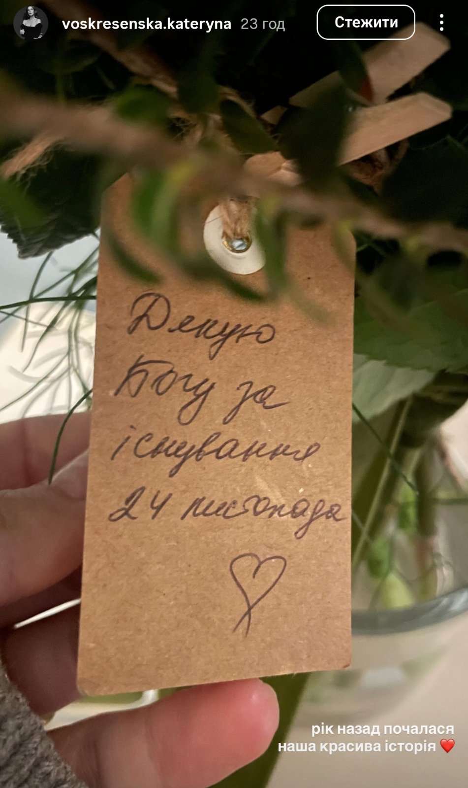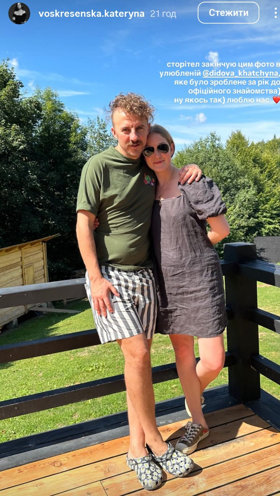 Як повідомила своїй сторінці в Instagram Катерина Воскресенська, вони вже рік у стосунках. Дівчина опублікувала зворушливий пост та фото.