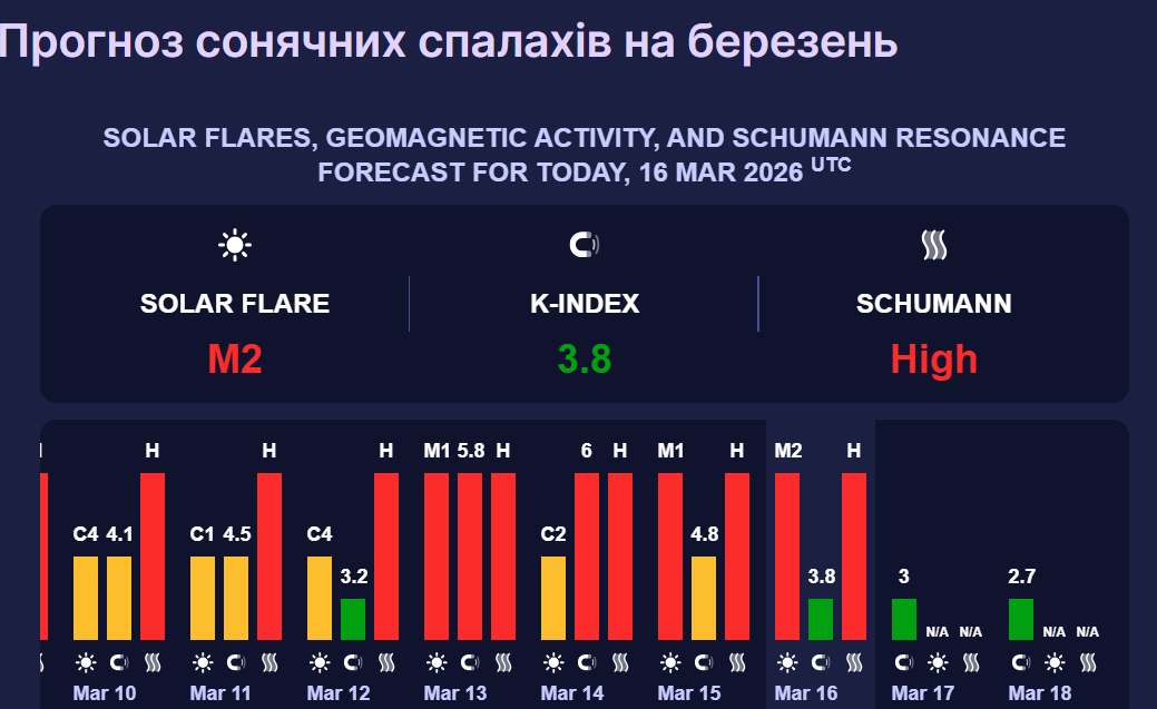 Нагадаємо, згідно з даними Центру прогнозування космічної погоди NOAA, у березні магнітні бурі будуть різної інтенсивності.