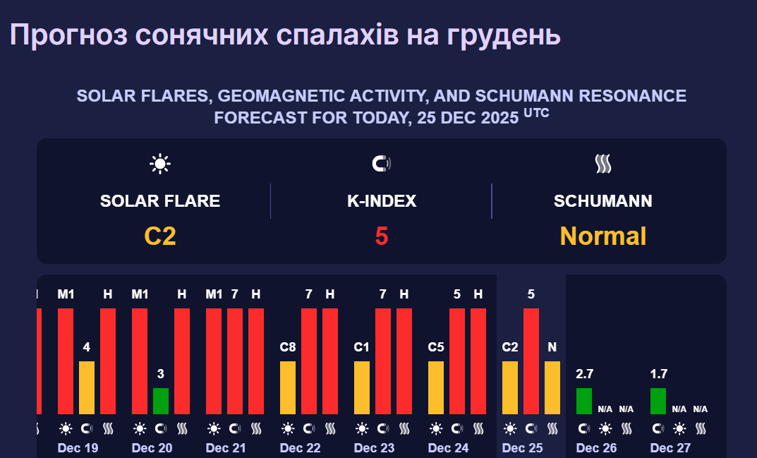 Додамо, згідно з даними Центру прогнозування космічної погоди NOAA, у грудні магнітні бурі будуть різної інтенсивності.