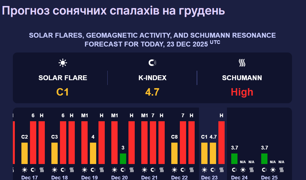 Додамо, згідно з даними Центру прогнозування космічної погоди NOAA, у грудні магнітні бурі будуть різної інтенсивності.