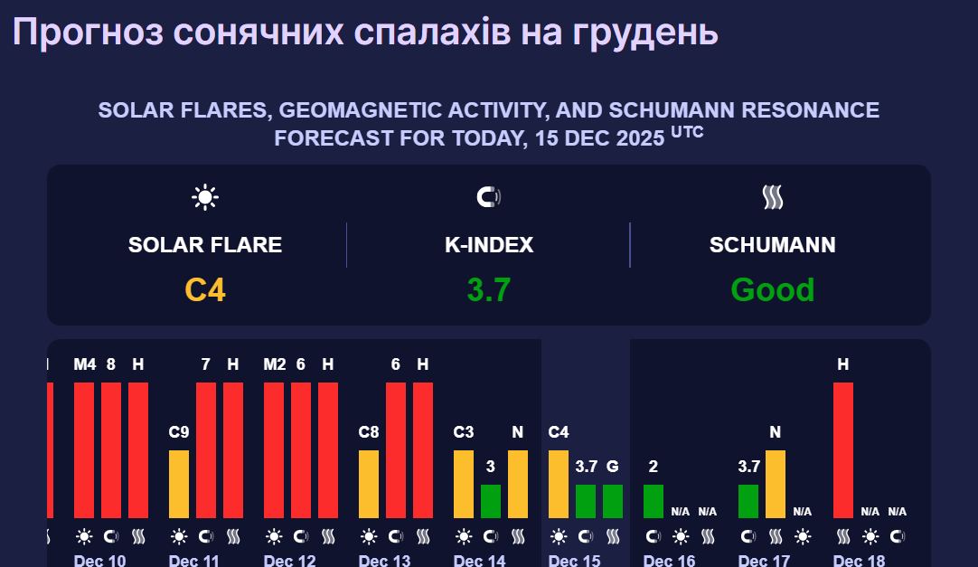 Додамо, згідно з даними Центру прогнозування космічної погоди NOAA, у грудні магнітні бурі будуть різної інтенсивності.