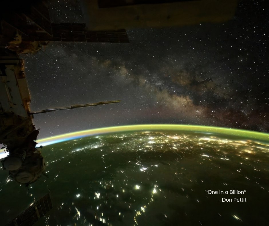 Так, серед найбільш неймовірних фото Чумацького шляху є світлина зроблена з борту Міжнародної космічної станції. Знімок був зроблений відомим астрофотографом і ветераном-астронавтом NASA Доном Петтітом, показує Чумацький Шлях, що виблискує над атмосферою Землі.