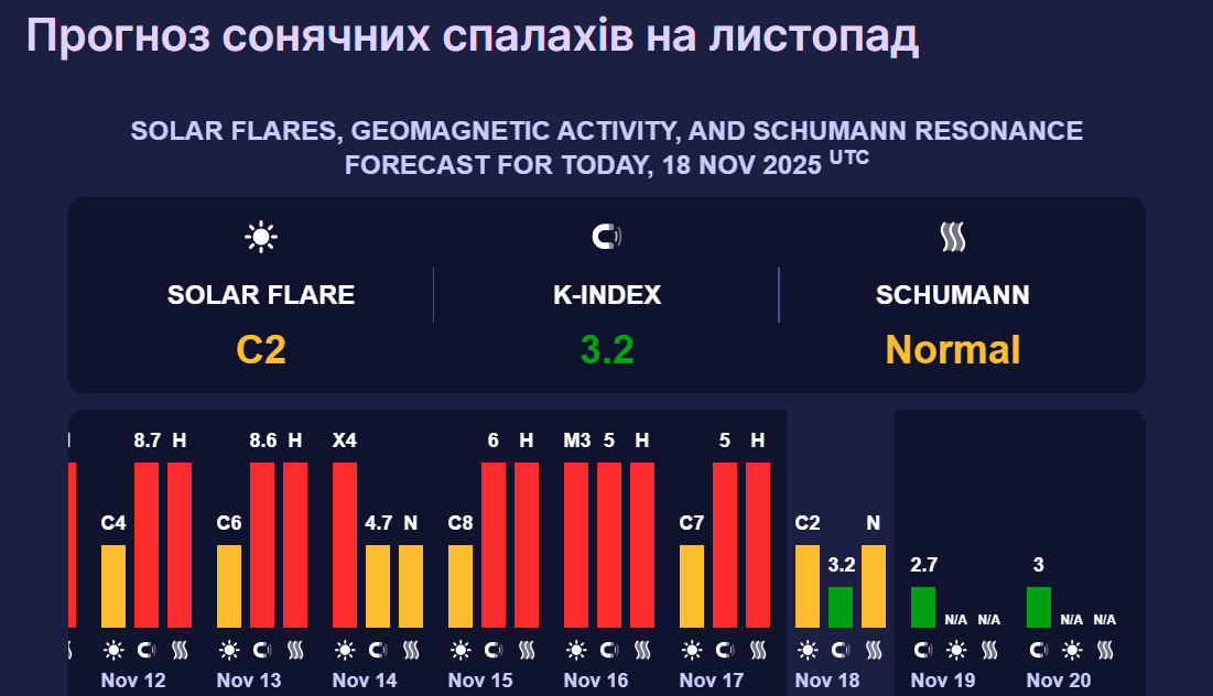 Нагадаємо, згідно з даними Центру прогнозування космічної погоди NOAA, у листопаді магнітні бурі будуть різної інтенсивності.