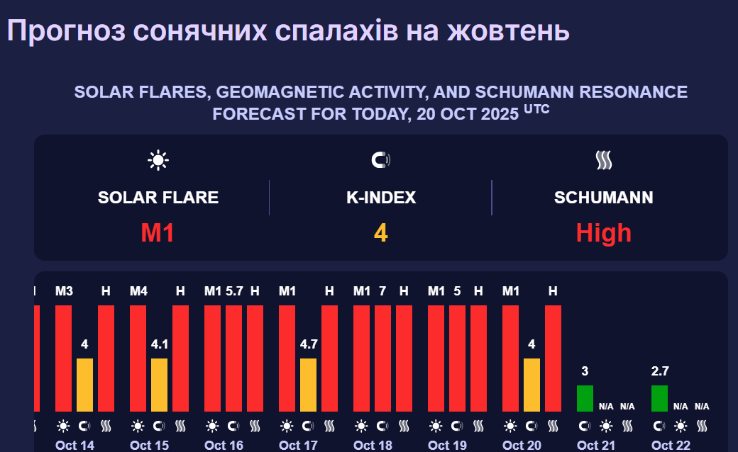 Нагадаємо, згідно з даними Центру прогнозування космічної погоди NOAA, у жовтні магнітні бурі будуть різної інтенсивності.