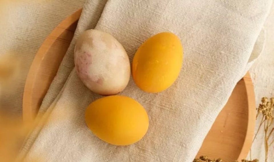 Щоб отримати яскраво жовті писанки — потрібно використати пряну східну спецію у вигляді порошку — куркуму. Для приготування таких крашанок: