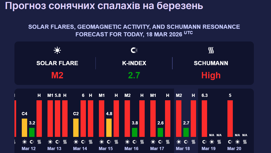 Нагадаємо, згідно з даними Центру прогнозування космічної погоди NOAA, у березні магнітні бурі будуть різної інтенсивності.
