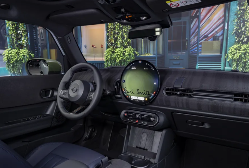 У салоні авто представлені спортивні сидіння кольору Nightshade Blue, що поєднують штучну шкіру Vescin із двоколірною текстильною верхньою частиною. Також для обробки приладової панелі та дверних панелей використовується тканинне оздоблення з оригінальним малюнком, а рульове колесо прикрашене декоративним орнаментом. Завершують список особливостей емблеми Paul Smith та стилізованого кролика на килимках.