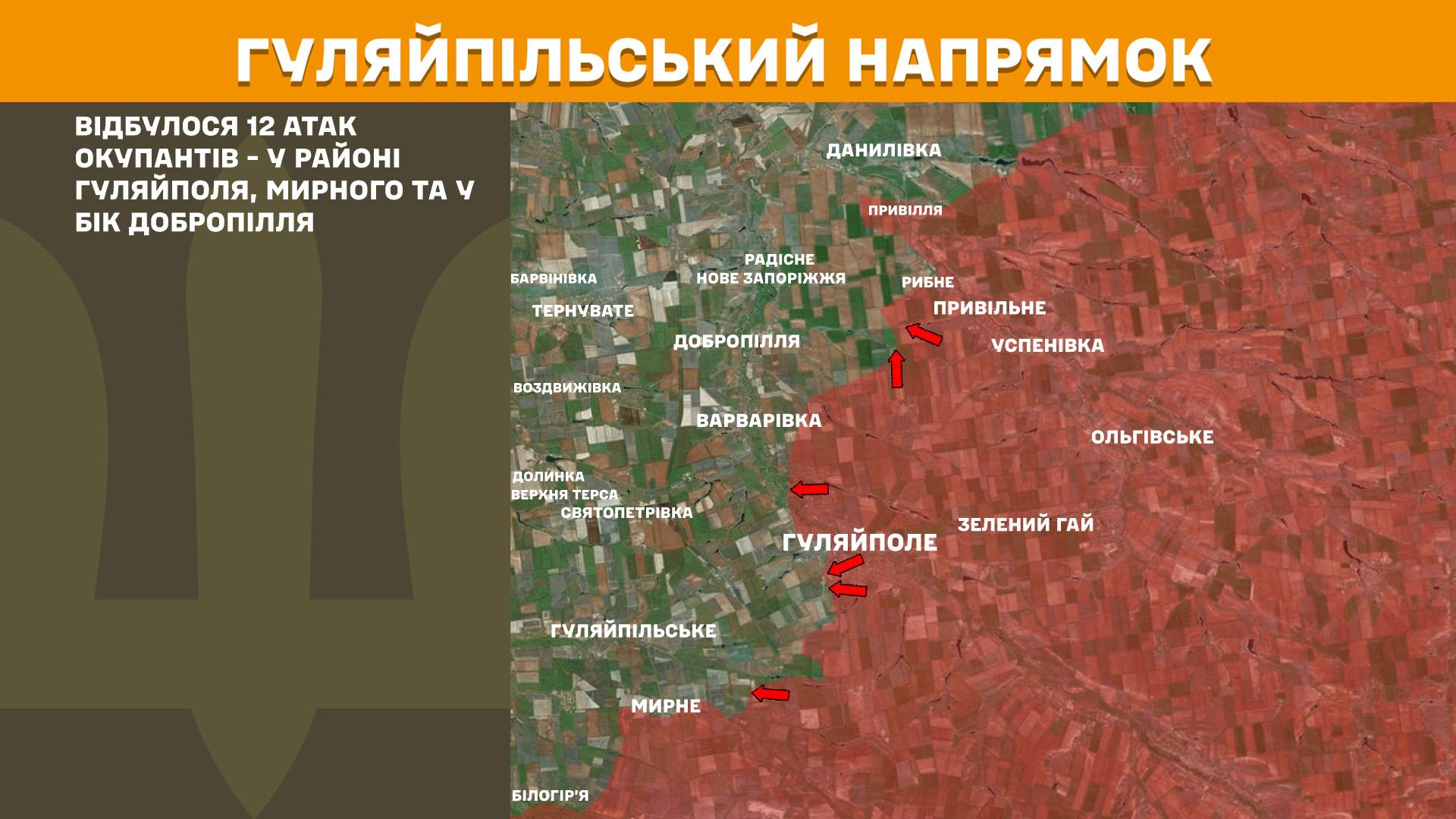 На Гуляйпільському напрямку відбулося 12 атак окупантів - у районі Гуляйполя, Мирного та у бік Добропілля.