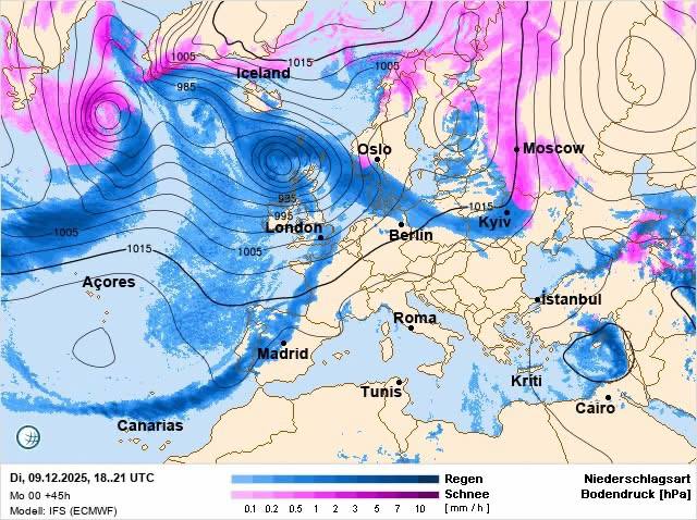 У вівторок, 9 грудня, в Україні очікується мінлива погода. Місцями можливий мокрий сніг та дощ.