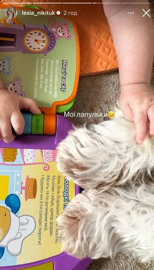 Хлопчику Оскару уже виповнилося п’ять місяців. Ведуча інколи показує шанувальникам цікаві фото малюка, проте його обличчя досі приховує. На новому кадрі видно дитячі ручки та книжечку. Поруч із хлопчиком можна помітити домашнього улюбленця.