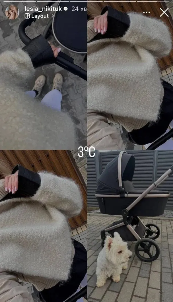 Також Нікітюк поділилася фото з осінньої прогулянки з сином. Зірка позує зі стильним дитячим візочком чорного кольору, але не показує свого обличчя.