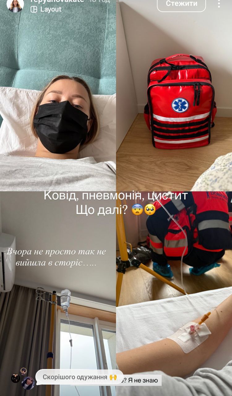 Відвертими "сторіс" 31-річна блогерка поділилася на своїй сторінці в Instagram. Вона показала фото під крапельницею.