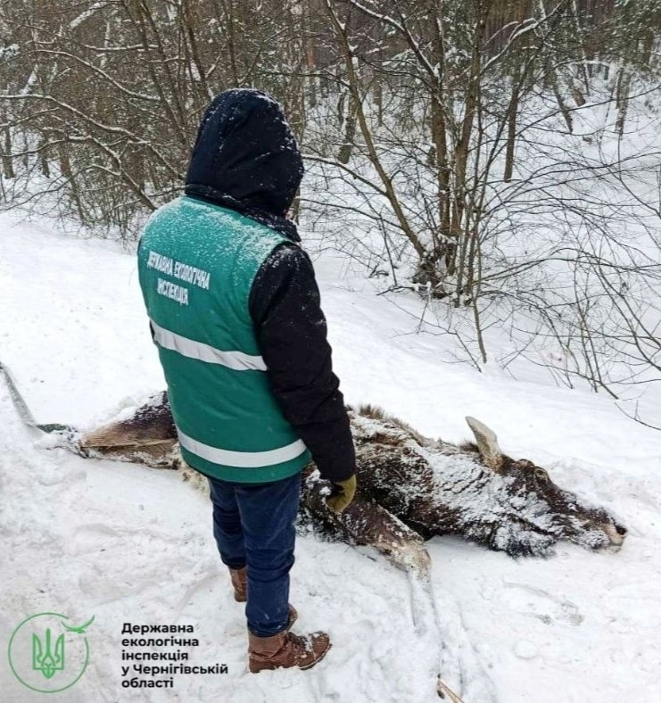 Про це повідомила Державна екологічна інспекція у Чернігівській області. Зазначається, що під колесами автівки опинився лось європейський.