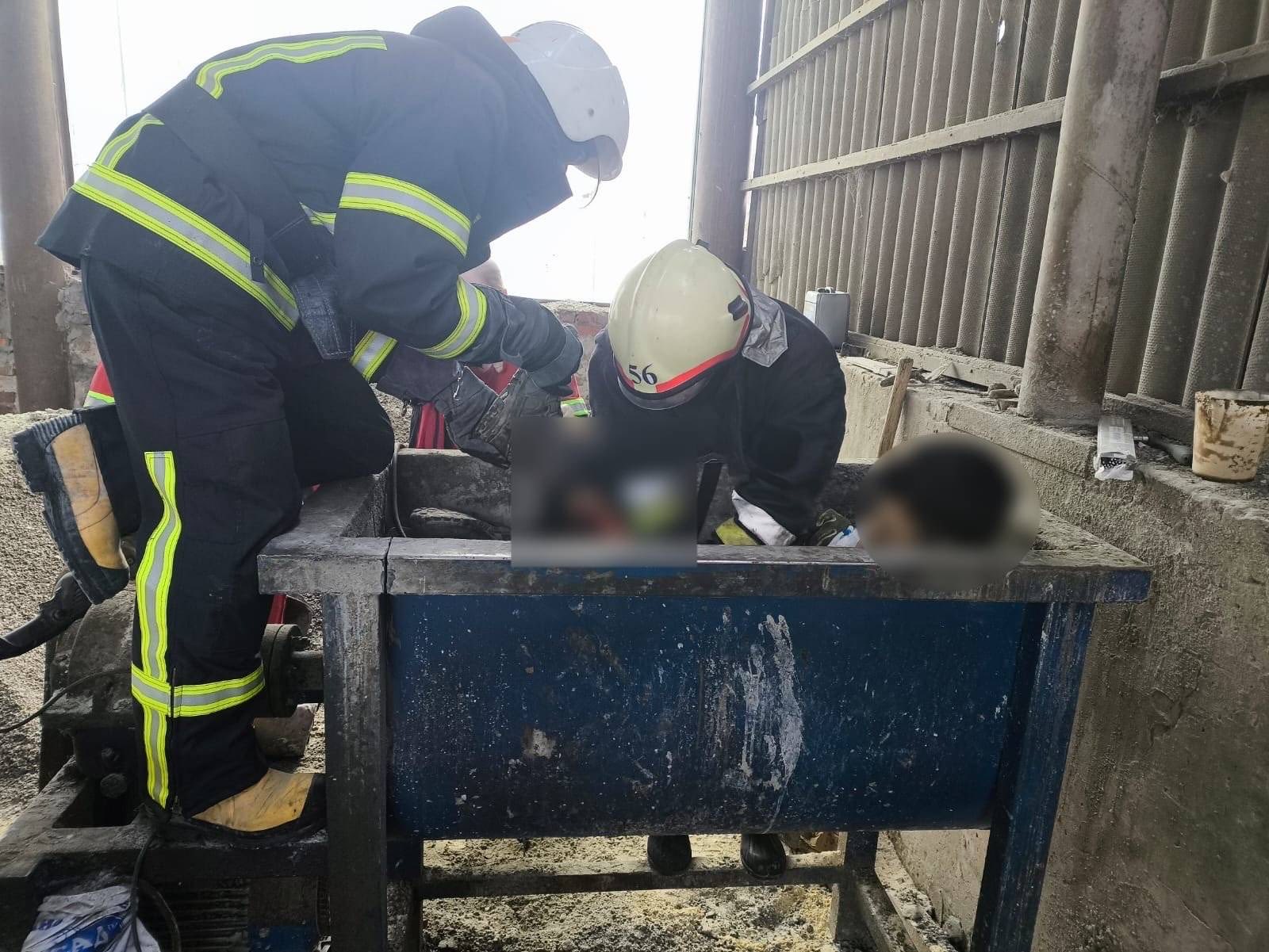 На місце події викликали лікарів та рятувальників. Медики не змогли самі дістати постраждалого, щоб надати допомогу. Тож рятувальникам довелося розрізати бетономішалку болгаркою, щоб звільнити хлопця.