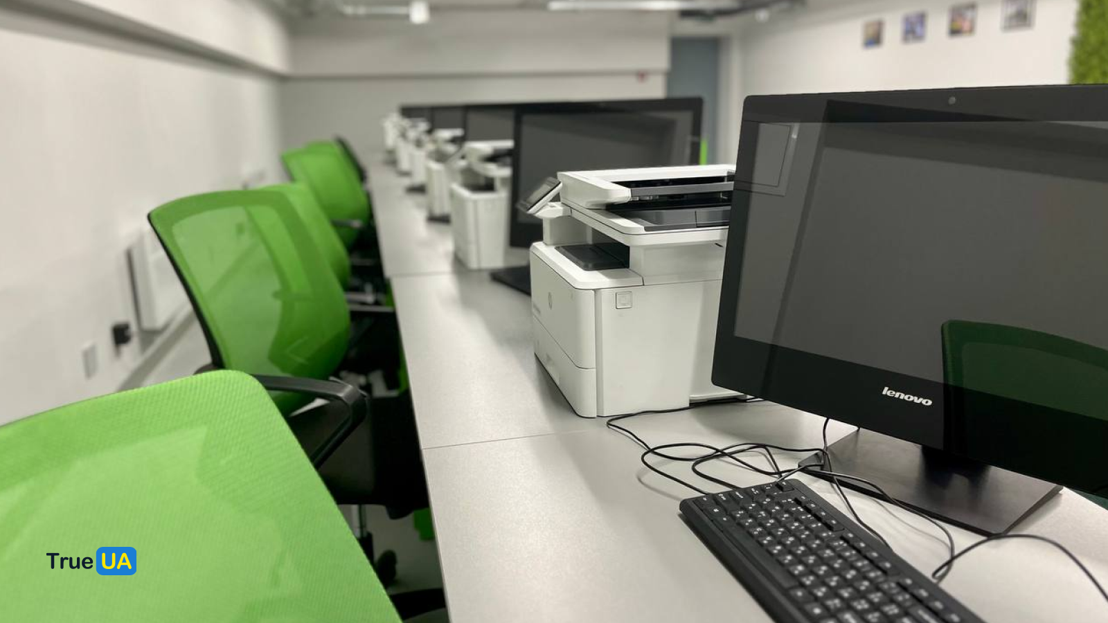 В укритті громадян обслуговуватимуть офлайн та оброблятимуть заявки онлайн одразу 10 адміністраторів — і створено стільки ж робочих місць. Для зручності відвідувачів облаштовано комфортні місця для очікування.