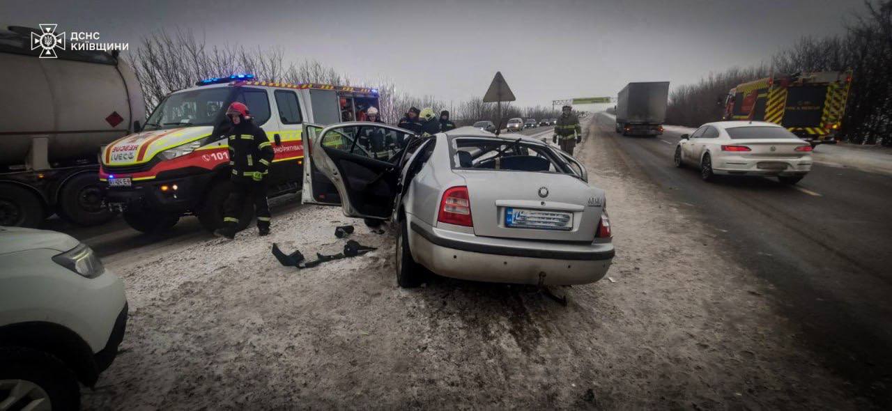 Про це повідомило Головне управління ДСНС України у Київській області. Аварія трапилася на автошляху Київ — Одеса. Зокрема, зіткнулися автомобілі Skoda Octavia та BMW X7.