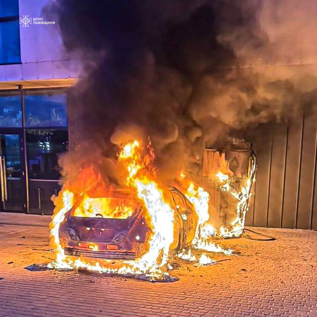 Зокрема, загорівся електромобіль Nissan, а також зарядна станція. Існувала загроза перекидання вогню на поруч розташовану будівлю.