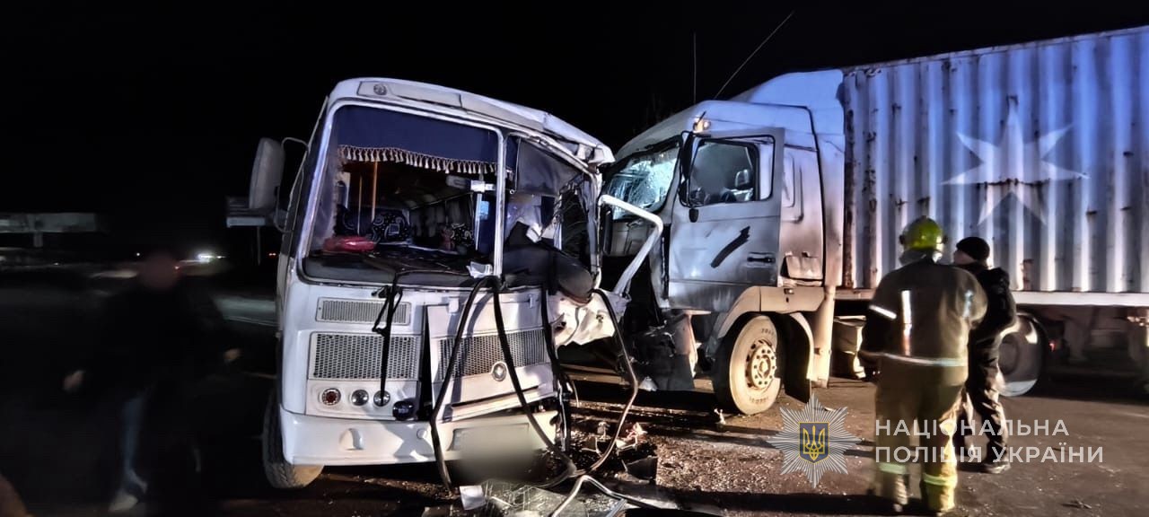 Ввечері 9 січня на Одещині сталася дорожньо-транспортна пригода. Зіткнулися вантажівка та автобус.