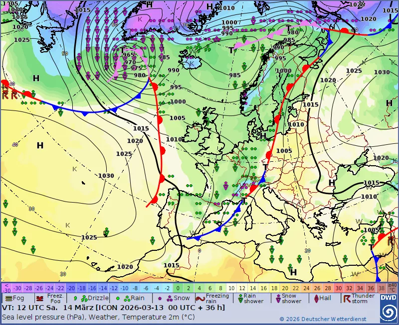 У суботу, 14 березня, по всій території України продовжиться період стійкої та малохмарної погоди під впливом антициклону.