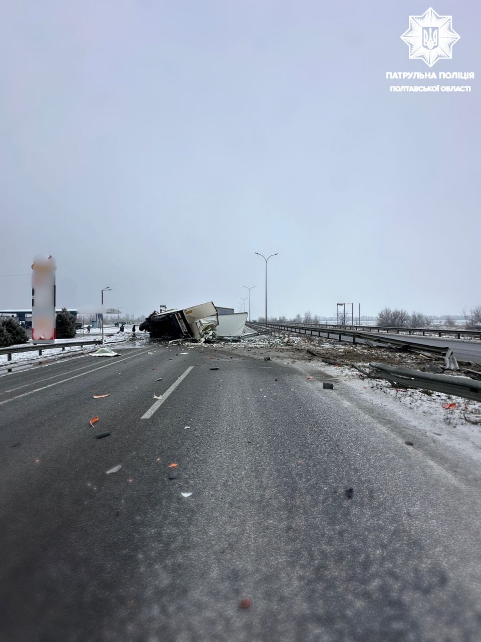 У четвер, 22 січня, в Полтавській області сталася аварія з травмованими. Рух у напрямку міста Києва перекритий.