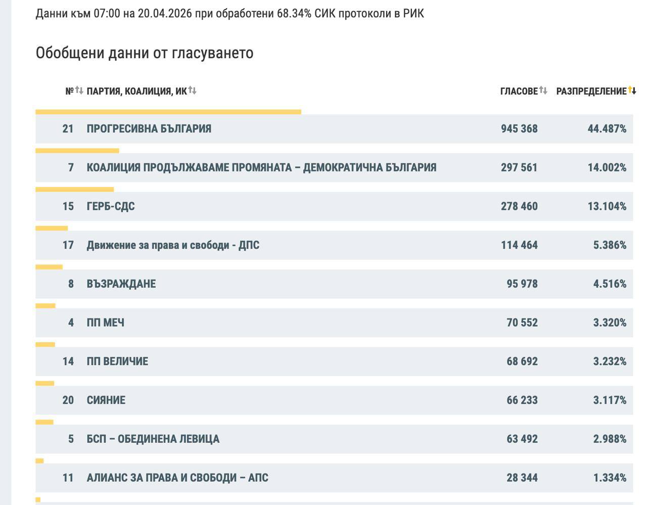 Про це свідчать дані на сайті Центрвиборчкому Болгарії.