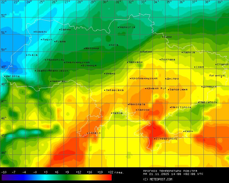 При цьому Наталка Діденко поінформувала, що потеплішає не повсюди. Та все ж 21 листопада в більшості областей України температура повітря підвищиться та становитиме протягом дня +9°С…+14°С.